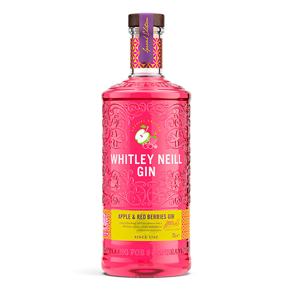 Whitley Neill Apple & Red Berries Gin Alc. 41,3% Land: England Findes i følgende størrelser: 700 ml glas (6 flasker pr. kolli)
