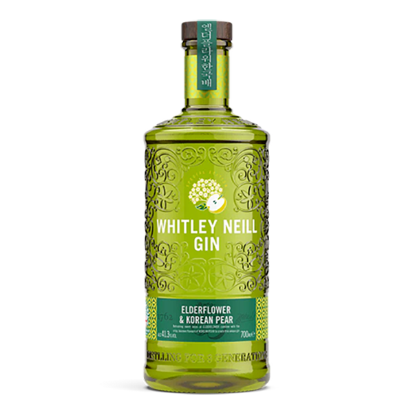 Whitley Neill Elderflower & Korean Pear Gin Alc. 41,3% Land: England Findes i følgende størrelser: 700 ml glas (6 flasker pr. kolli)